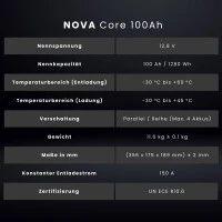 | Technische Daten | NOVA Core 100 Ah |